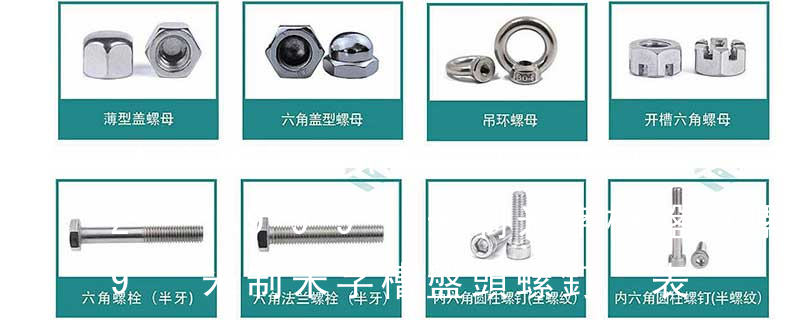 1.機(jī)螺釘 2.自攻螺釘 3.鉆尾螺釘 4.墻板釘 5.纖維板釘 6.木螺釘7.六角木螺釘 8.不脫出螺釘 9.組合螺釘 10.微型螺釘 11.家具螺釘 12.電子螺釘 13.鏈帶螺釘頭型 :1.六角頭(hexagon head)2.六角頭法蘭面(hexa ASME B1.1-1989(R2001) 統(tǒng)一英制螺紋 ASME B1.12-1987(R1998) 5級過盈配合螺紋 ASME B1.20.3-1976(R1998) 干密封管螺紋(英制)ASME B1.20.5-1991(R1998) 干密封管螺紋的檢測(英制)ASME B1.20.7