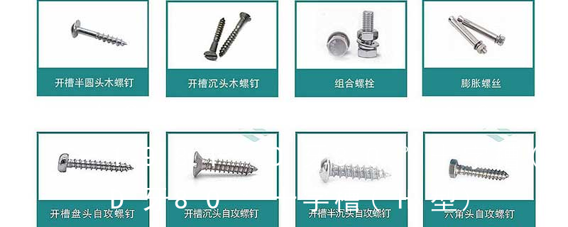 (鐵板牙自攻螺絲) B-2: Plastic Tapping Screw. (塑膠用,自攻螺絲) C: Wooden Screw : 木工螺絲 D: Drywall Screw :水泥墻螺絲 E: Self Drilling Screws鉆尾螺絲(不銹鋼鉆尾螺絲,復合材料鉆尾螺絲) F:膨脹螺絲,四片膨脹螺絲又
